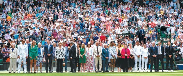 3日,正在舉行2022溫布爾登網球公開賽的全英網球俱樂部舉行了中心球場開業100周年紀念儀式。在當天的活動中,從職業選手可以參加四大滿貫賽事的1968年以後(公開賽時代)首次獲得該大賽男單冠軍的羅德•拉沃(84歲•澳大利亞)開始,歷屆溫布爾登網球公開賽的26名單打冠軍逐壹被介紹。介紹順序是溫布爾登公開賽冠軍次數。繼賽會5屆冠軍維納斯•威廉姆斯(42歲•美國)之後,6屆冠軍比利•金(79歲•美國)和諾瓦克•德約科維奇(35歲•塞爾維亞)也入場後,擔任主持人的蘇•巴克(66歲•英國)表示:“還有嗎?有8次冠軍吧?”在觀眾席騷動期間,壹起擔任主持人的約翰•麥肯羅(53歲•美國)高喊“羅傑•費德勒”,中心球場正門被打開,費德勒露出燦爛的微笑。