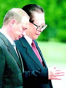 俄羅斯總統普京與中國國家主席江澤民于18日表示反對正在進行中的美國導彈防禦系統. 並主張為了防止此事﹐國際社會應該團結.