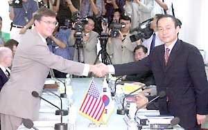 下午2時左右對於宋民淳局長的修正消除了SOFA的象征性問題和現實的不變原則雙方達成一致﹐美國方面表示了所有問題都可以討論的態度.