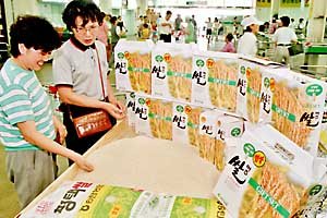 漢城瑞草區陽在洞農業協會的市場有很多京畿﹑驪州﹑平澤等地產的新大米.