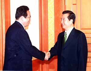 今天金大中總統邀請作為朝鮮國防委員長金正日的特使訪韓的朝鮮勞動黨對南秘書金容淳一行到青瓦臺作客, 他們共進午餐, 席間雙方就6·15共同宣言的執行問題等交換了意見. 金總統說在此我們正促進我們應做的事情能夠具體實施, 對此雖然有多種不同意見, 但我們應該態度堅定, 把共同宣言付諸實踐, 同時, 我們應獲得國民的支持來謀求發展.