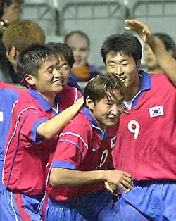 韓國足球隊在2000年悉尼奧運會上獲得了首場比賽勝利﹐從而有了進入八強的希望.