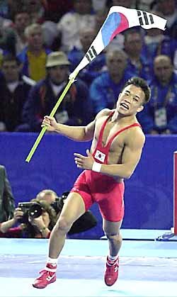 小巨人沈權虎(28歲)連續兩屆奧運會上獲得金牌的.沈權虎在今天下午舉行的2000年悉尼奧運會古典式摔跤54公斤級決賽中以8比0擊敗古巴選手拉扎羅.利巴斯奪得金牌.96年亞特蘭大古典式摔跤48公斤級金牌獲得者沈權虎成為第一位在奧林匹克個人賽上連續獲兩枚金牌.