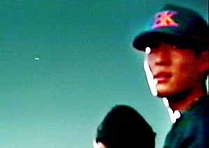 上個月14日,在美國艾利琢那州正在進行電腦廣告攝影的金丙鉉選手的照片中出現了沒有確認的飛行物體.左側上邊的白色發光物體正在移動.