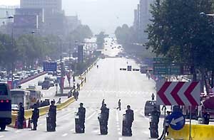距離ASEM開幕還有一天的19日,在ASEM會議場週圍佈置了國家情報員﹑軍隊和警察2萬多人﹐這是政府成立後﹐最大規模的特級警備陣容,警察正在ASEM大會場前封鎖馬路.