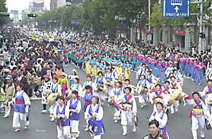 29日星期天正逢第七屆漢城市民之日﹐在漢城世宗路和鐘路一帶展開了打鼓隊遊行等多姿多彩的紀念活動和祝賀公演.