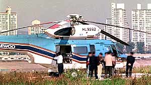 11日下午在漢城蠶室直升機場﹐準備坐直升機去江原道旌善賭場的乘客們正在候機.有人提出異議﹐難道非要在經濟不景氣的狀況下乘直升機去賭場嗎﹖