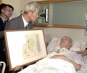 1日下午,畫家金基昶(號雲普)在漢城三星醫院與從北韓來的弟弟金基萬教授相見,金畫家將平時珍藏的作品《僧舞》遞給弟弟.