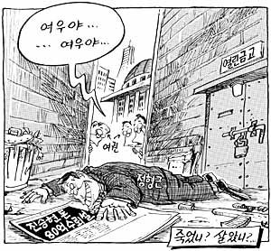 "民主黨"在衚衕口喊着"狐狸...狐狸...", 瞟着鄭亨根.