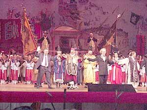 5日在羅馬的"Theatre del Opera"上演"英雄李舜臣"之後, 演員和製作小組向熱烈歡呼的觀眾招手致意.