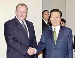 在此之前﹐金大中總統于周三上午﹐與瑞典總理皮爾森舉行了高峰會談﹐決定將于明年上半年召開韓國與歐盟第一次共同委員會﹐探討韓國與歐盟間的經濟合作方案.