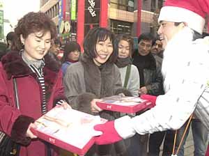 ‘聖誕老人也穿內衣!’ 周三在漢城明洞開展了綠色聯合組織主持的‘穿內衣運動’. 在此活動中, 戴着聖誕老人帽子的綠色聯合組織會員向市民們贈送內衣.