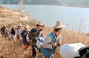 “我們祖先是否也是從這條路這樣走過的﹖”青少年老路探險隊的40余名隊員背著包袱戴著竹編斗笠,從釜山經慶南梁山市甘露碼頭前往漢城.前往漢城的老路為500公里大長征.