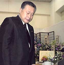日本總理森喜朗29日前往東京日本語學校赤門會設置的李秀賢的靈堂吊唁.