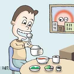학생이나 직장인 중에는 아침식사를 거르는 이들이 많다. 아침 식사를 하면 속이 더부룩하다고 커피 한 잔을 하는 분도 있다. 오랫동안 아침식사를 안 하는 습관을 가지면 어쩌다 한 아침식사에 속이 거북하고 그러다 보니 더욱 아침식사를 거르게 된다.