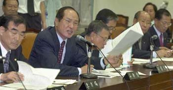 19日,在國會農林海洋水産委員會會議上大國家党議員申京植(音譯,左第二)在追究韓、中大蒜協定隱瞞真相。