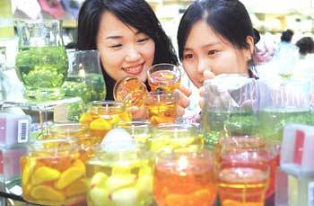 “邊聞水果香味邊除去雨季的潮氣吧”作爲降價賣場的“2001oulet”漢城專賣店在舉行截止下月25日的“水果香蠟特價展”。該蠟燭含有葡萄、蘋果、桔子香味,可以散發出淡淡的水果香,並且具有除濕效果。