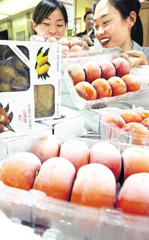 截止到4日,新世界百貨商店漢城明洞分店將紅柿子和泰國產熱帶水果芒果、榴蓮果等冰鎮後進行銷售。