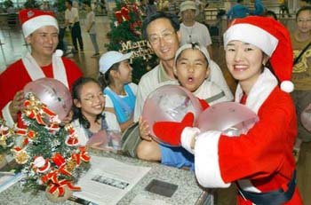 6日,韓亞航空公司在仁川機場舉辦了身穿聖誕老人服裝的職員向兒童乘客贈送浮水氣球的活動。韓亞航空公司解釋說:“爲使避暑遊客感到涼爽,策劃了‘夏天耶誕節’。”