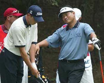 5日,在京畿高陽漢陽球場新賽程(72杆)上進行了第45屆可隆韓國高爾夫公開賽(總獎金5億韓元,冠軍獎金1億韓元)第一輪比賽。