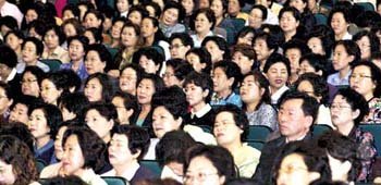 27日,在漢城梨花女子高中柳寬順紀念館舉行的以“婦女不參政何來平等”爲主題的第39屆全國婦女大會上,衆多與會者正在傾聽殷芳姬的紀念致詞。當天,在由韓國婦女團體協定會主持舉行的該活動中,各與會者敦促將國會議員和廣域議員的比例代表議員席位數增加至30%,以保護婦女和被冷落階層的權益。