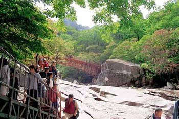 隨著“鹿莎”號颱風的賑災修復工作有所進展,到雪嶽山來欣賞剛剛開始染紅的楓葉的遊客絡繹不絕。周末和休息日的29日1萬多名遊客來到雪岳山一邊欣賞著落到喜雲閣待避所的紅葉,一邊下山。