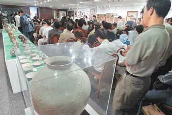 6日漢城鍾路區仁寺洞的一所拍賣場引來了衆多前來購買古董和美術作品的人,場面熱鬧非凡,拍賣出售的物品價格在1000韓元到1000萬韓元價格不等。