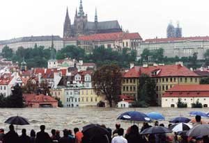 由於洪水泛濫前,市民們拼命把裝滿沙子的袋子壘在伏爾塔瓦河邊,使舊城廣場的損失降到了最低。哥特式火藥塔也安然無事。