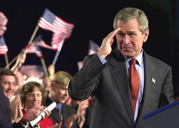 18日,美國總統喬治·W·布希在位於美國明尼蘇達州羅徹斯特城市的羅徹斯特技術大學進行演講前,向觀衆敬軍禮。
