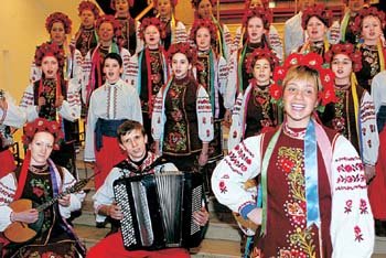 烏克蘭兒童合唱團于10日在漢城中區樂天百貨店總店向顧客奉獻了聖誕聖歌等優美和聲演唱。