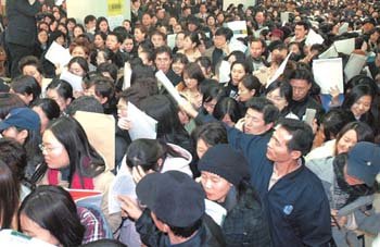 13日是2003學期大學入學定時招生接受學生資料的最後一天,下午在漢城西大門區大峴洞梨花女子大學接受志願窗口,因最後階段考生的湧來,秩序變得一片混亂。