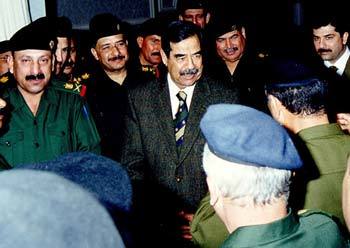 伊拉克總統薩達姆19日正視察精稅部隊共和國守衛隊,並與軍隊負責人進行交談。