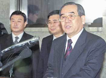 作爲金大中總統特使對北韓平壤進行爲期3天(2宿)訪問後,於29日回到漢城的總統統一外交安保特別助理林東源在漢城三清洞南北對話辦公室正在舉行記者招待會。