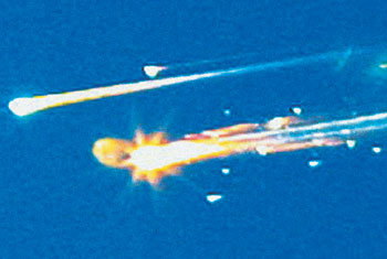 美國太空梭“哥倫比亞號”於1日上午9時許,在空中發生爆炸,其殘骸在空中劃著長長的白色軌迹,正從德克薩斯州上空掉落。一位業餘攝影師在德克薩斯州泰勒市的自家院內拍攝了這一場面。這一期間,弗羅裏達州的美國宇航局(NASA)地面控制中心,還在試圖與宇航員通話。