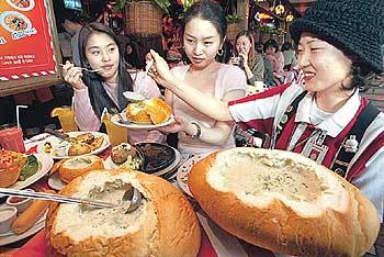 家庭西餐廳 T.G.I. Fridays店從3日開始銷售可在麵包裏夾著湯的“海鮮雜燴湯(clam chowder)。”這是針對忙碌的打工族而推出的麵包。