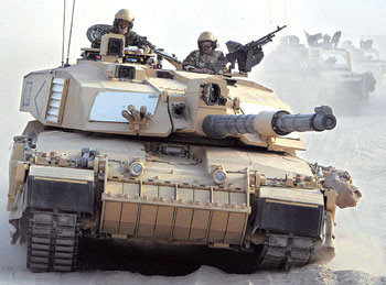 22日,英軍坦克“挑戰者”正在向伊南部城市巴士拉挺進。當天美英聯軍表示,他們實際上已控制了戰略要地巴士拉。