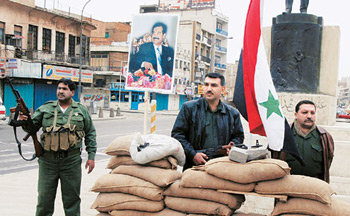 24日,伊拉克執政黨社會復興党下屬的武裝隊員爲準備巴格達市內的巷戰,正在進行防衛準備。