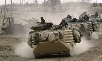 2日,美軍第七聯隊所屬的海軍陸戰隊在去往巴格達的要衝底格裏斯河上設立橋頭堡後,正在嚴密保護橋梁。