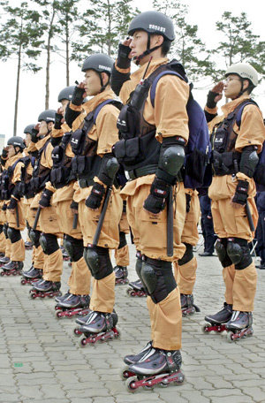 22日,漢城麻浦警署在麻浦區上岩洞世界盃公園中正在舉行由20多名義務警察組成的自由巡察成立儀式。他們主要負責管制違反基本秩序及各種犯罪行爲。