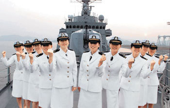 自海軍建立以來,能夠首次登上戰艦的畢業於第57屆海軍士官學校的10名女軍官在韓國型驅逐艦3500噸級乙支文德艦上拍下了紀念留影。今年3月,被任命爲少尉的她們直到下月安排在戰艦上,執行通信官航海師等任務。