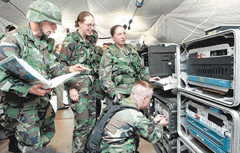 22日,駐韓美軍在京畿平澤市的赫姆弗裏基地(Camp Humphreys)501情報部隊內公開對北情報收集裝備,對情報收集活動進行了說明。圖中,美軍情報兵正在試操作情報收集設備。