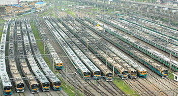 29日,在鐵路工會罷工持續不斷的情況下,本應運行在首都地區的電車卻並列停放在九老車輛基地。