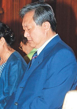 20日,被檢察機關申請事前拘捕令的民主黨代表鄭大哲正在漢城中區一教堂內進行祈禱。