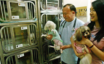 如今,把寵物託付給動物醫院後去度假的人日益多了起來。24日,位於韓城中區退溪路的一家動物醫院“寵物賓館”中,滿是主人託付于此的寵物狗。託付費爲每天1萬韓元。