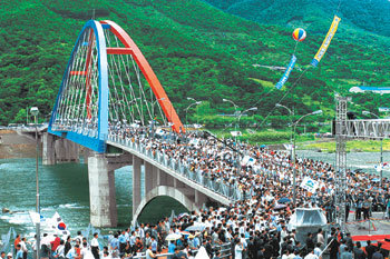29日上午,舉行了連接全南求禮郡艮田面和慶南河東郡的南道大橋開通儀式,行政自治部長官金鬥官、慶南道知事金焃珪、全南道知事朴泰榮及附近居民等5000多人參加了開通儀式。經過3年時間竣工的這座南道大橋被認爲是東西和解之橋。