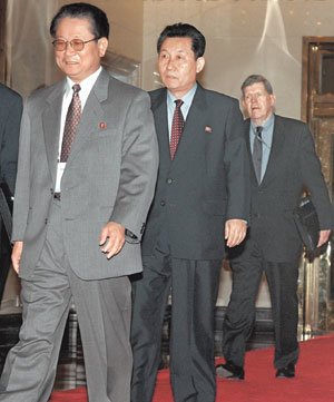 29日,在結束爲期3天的北京6方會談後,爲了同中國外交部長唐家璿國務委員進行會晤,正在走出會議室。走在最前面的北韓首席代表金永日的表情很微妙,走在其後的是北韓駐華大使崔真秀和美方首席代表美國務副國務卿助理詹姆斯·凱利。
