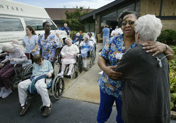 時速在160公里以上的特級颶風“伊薩貝爾 ”在18日正午左右(當地時間)登陸美國東部海岸的消息傳出後,17日,坐落在美國北卡羅來納州的小城市巴爾的養老院中,護士和老人們正在緊急逃避。