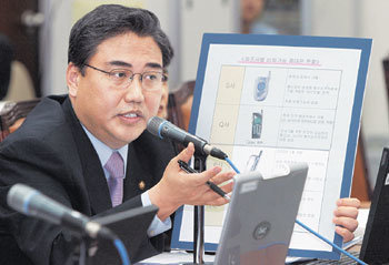 19日,在國會科學技術資訊通訊委員會監察中,大國家党議員朴振向資訊通訊部長官陳大濟出示配置升級晶片的手機的資料,並提問手機的竊聽可能性。