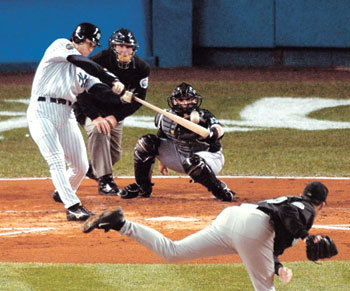 日本擊球手松井秀喜(29歲,紐約洋基隊)在世界舞臺上也成爲了英雄人物。