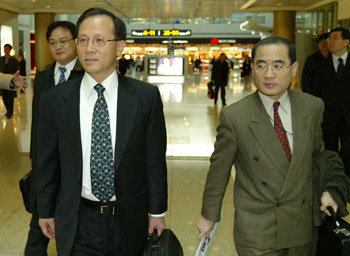 3日,外交通商部次官助理李秀赫(左)和北美局局長魏聖洛爲了參加將在美國華盛頓舉行的韓美日對北政策協定會從仁川機場出發前往美國。政府希望通過此次協商能夠儘快制定第二次6方會談相關方案。
